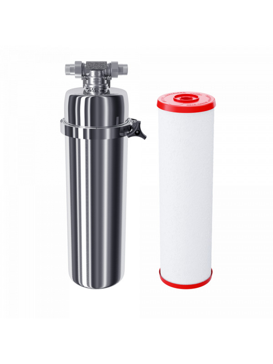 Магистральный фильтр из нержавеющей стали со сменным полипропиленовым модулем. Модуль рассчитан на воду температурой до +75°С. Обеспечивает базовую предочистку воды во всей квартире. при этом напор остается практически без изменений. Выбирайте надежную систему для дома.