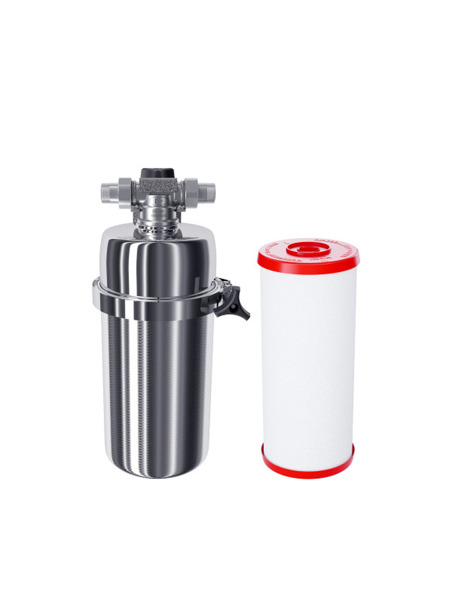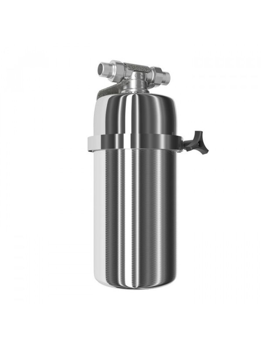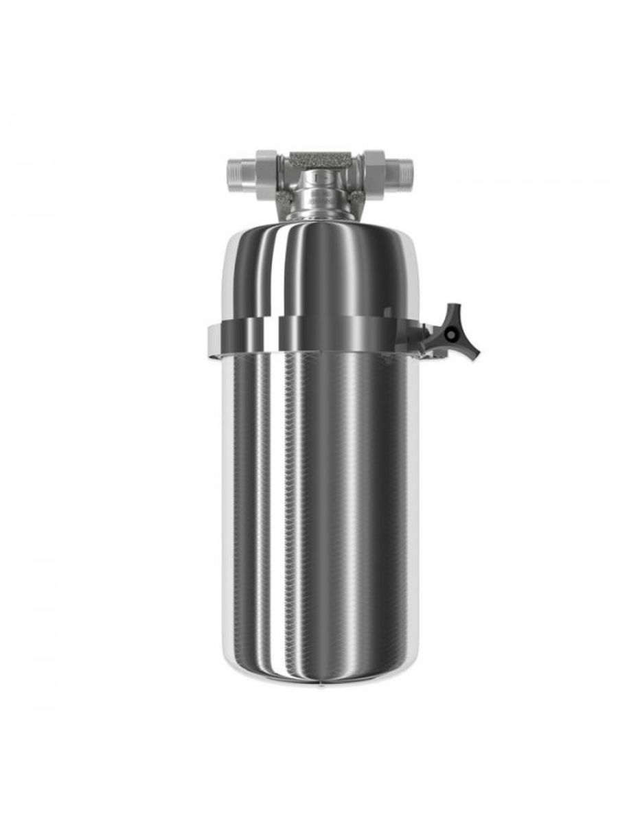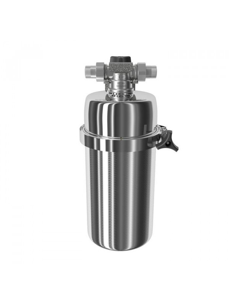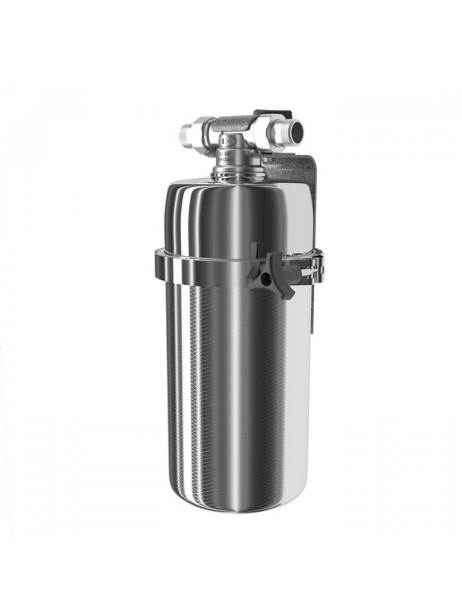 Магистральный фильтр среднего размера. Модель оснащена быстросъемным креплением «американка». Нижний полукорпус изготовлен из нержавеющей стали марки AISI 316. особенно устойчивой к коррозии и высоким температурам. Выбирайте надежную систему для дома.