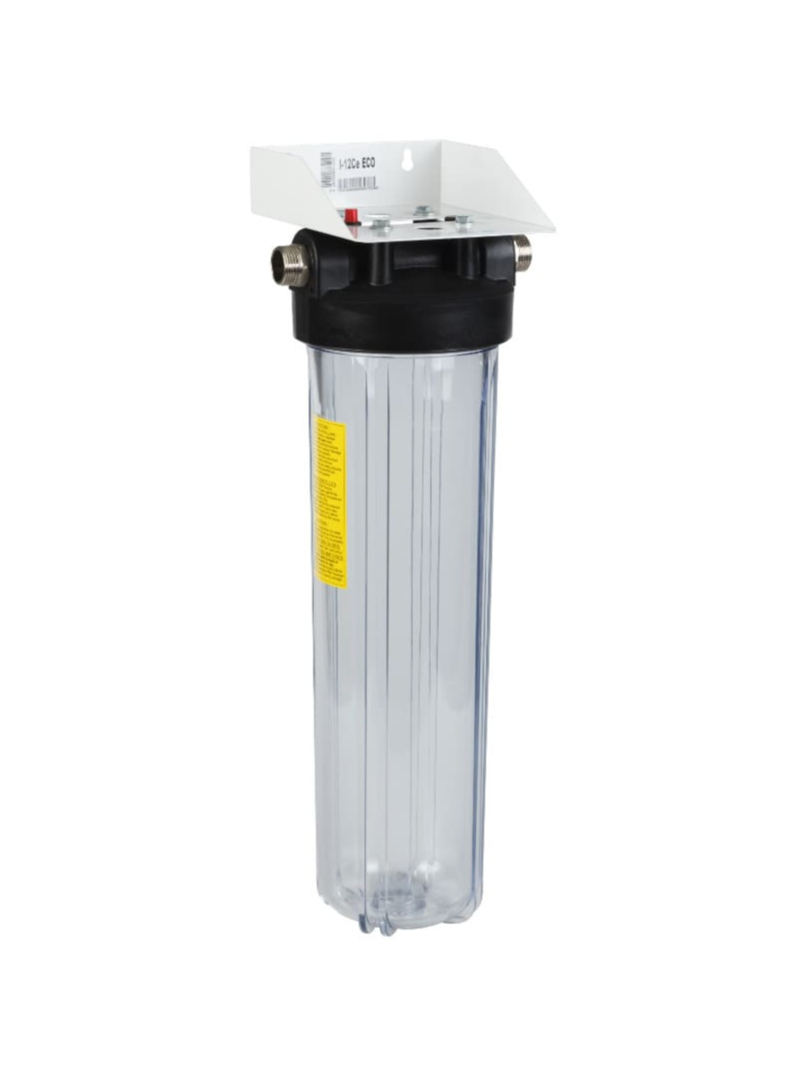 - Прозрачная колба позволяет визуально отслеживать степень загрязнения фильтрующего элемента.