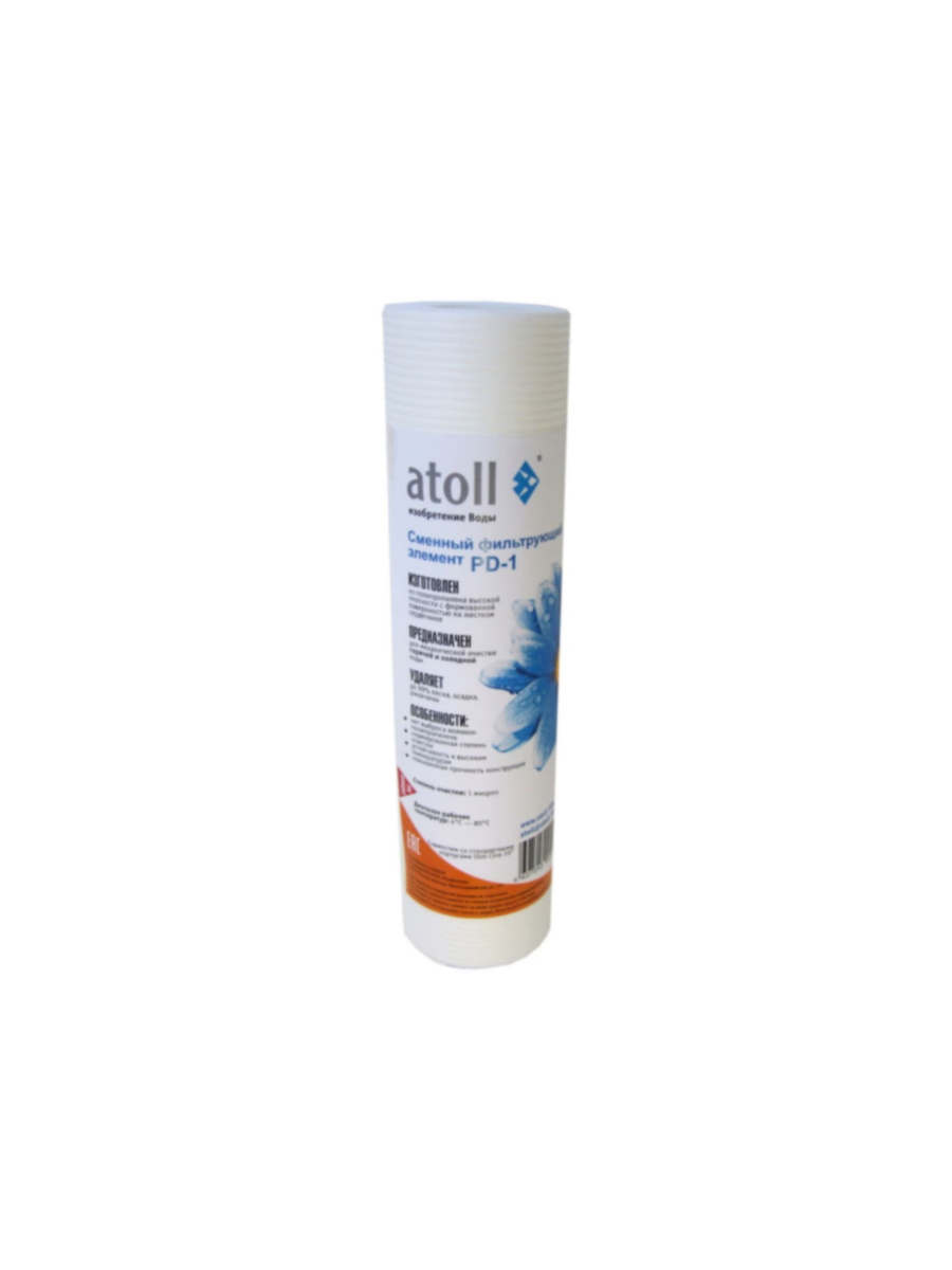 Картридж atoll PD-1 предназначен для очистки горячей и холодной воды от твердых частиц размером более 1 микрона. Изготовлен из вспененного полипропилена, устойчивого к высоким температурам, что позволяет использовать его как для холодной, так и для горячей воды. Сердцевина выполнена из жесткого полипропилена, что обеспечивает прочность и долговечность. Совместим с корпусами стандартного размера SL10, подходящими для использования в бытовых и коммерческих фильтрах. Этот картридж является эффективным средством для начальной фильтрации воды, защищая последующие ступени фильтрации от преждевременного износа и обеспечивая улучшение качества воды.