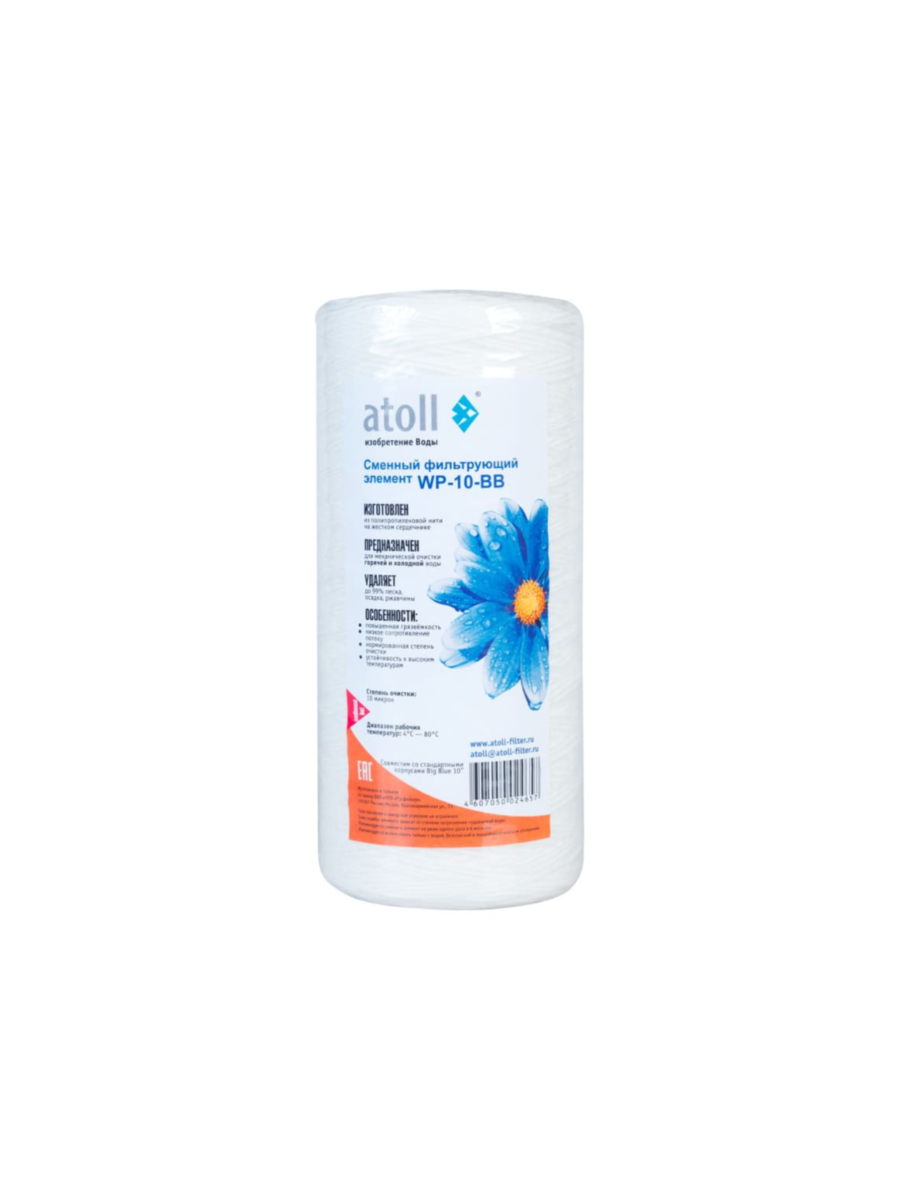 Картридж atoll WP-10-BB предназначен для фильтрации горячей и холодной воды от твердых частиц крупнее 10 микрон. Изготовлен из термостойкого полипропиленового волокна, усиленного жестким полипропиленовым сердечником. Совместим с корпусами стандартного размера BB10, обеспечивая эффективную предварительную очистку воды в бытовых и промышленных системах фильтрации.