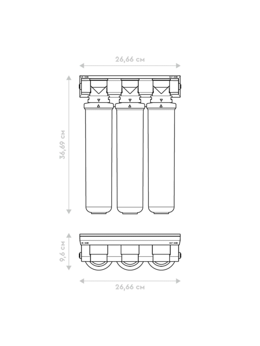 - Индикатор ресурса помогает избегать превышения срока эксплуатации картриджей, предупреждая ухудшение качества воды и снижая нагрузку на систему фильтрации.