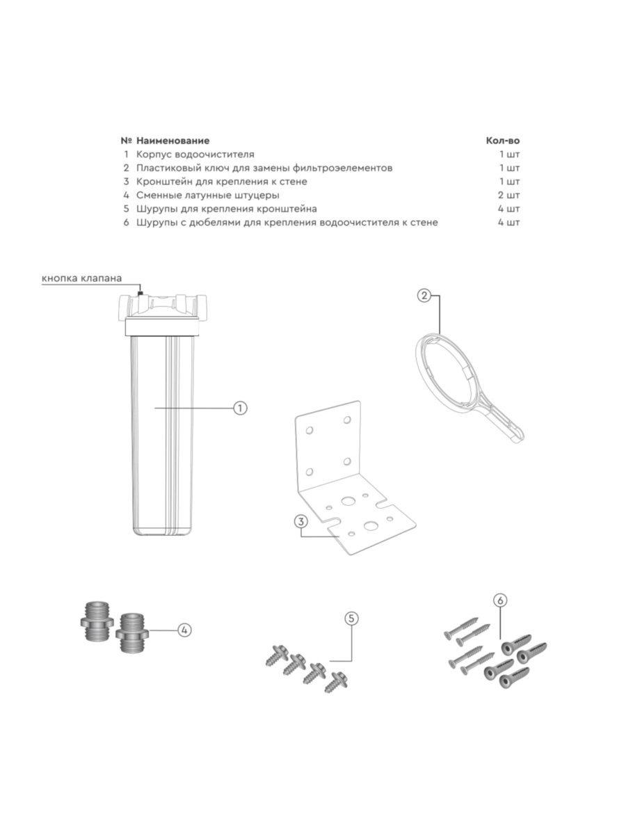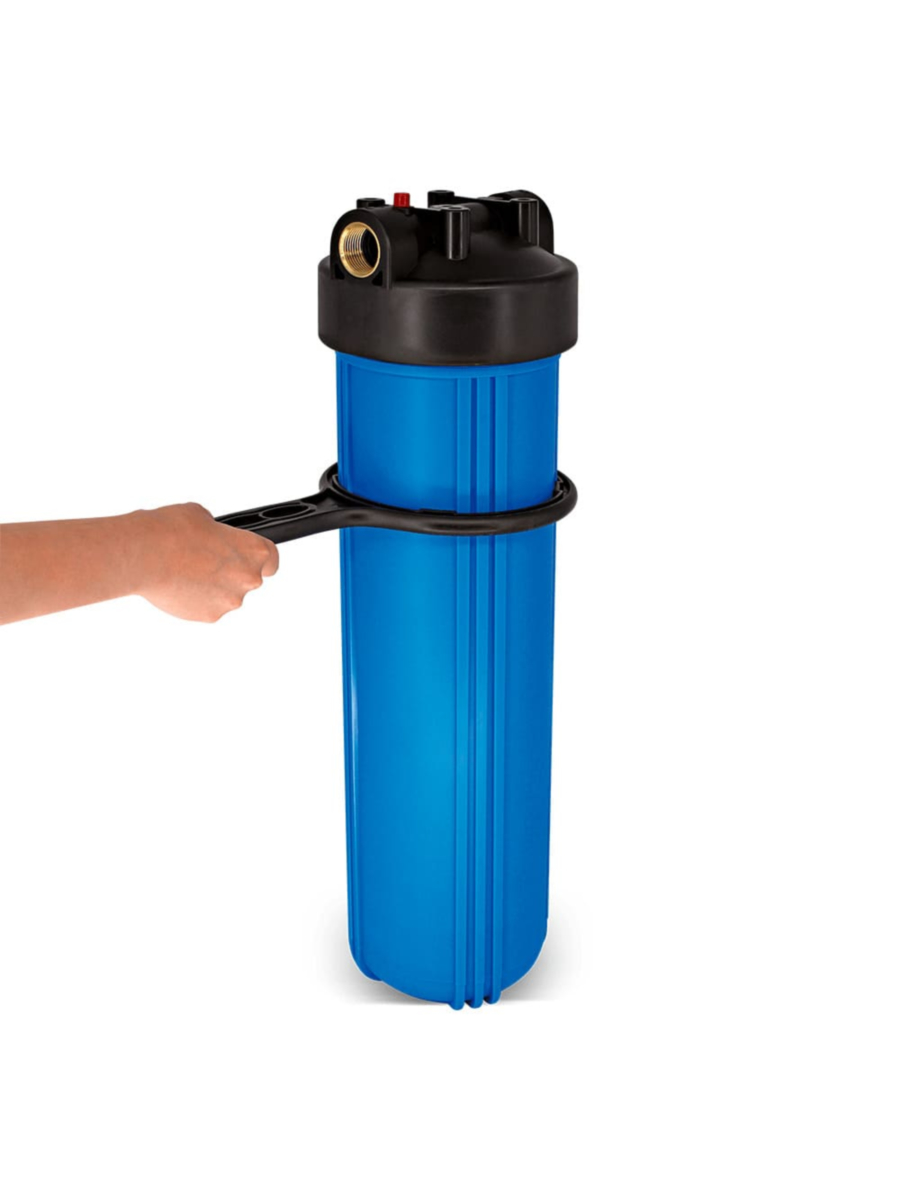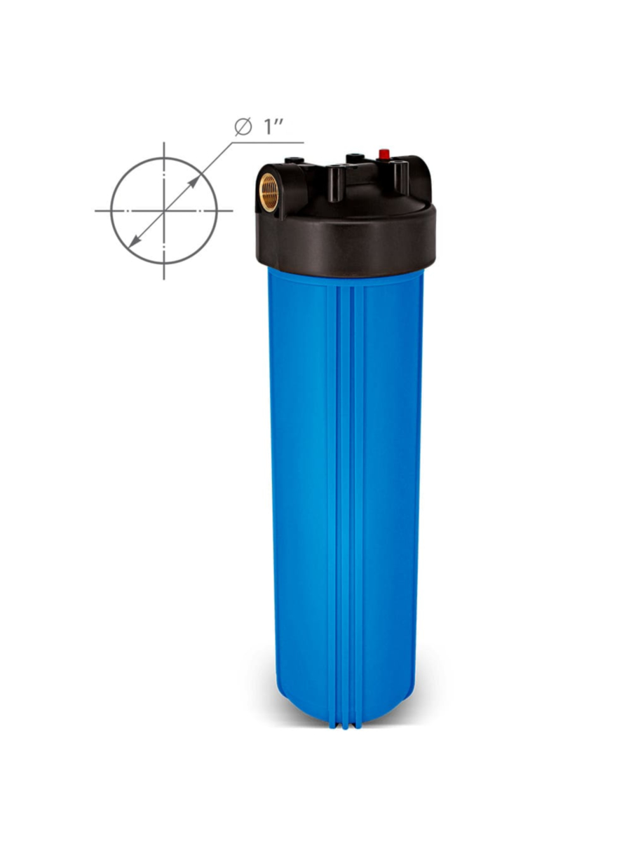 - Совместим с любыми картриджами формата Big Blue 20, что позволяет использовать различные варианты фильтрации в зависимости от качества воды.