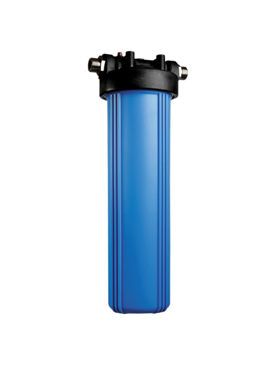 - Совместим с картриджами всех типов стандарта Big Blue 20, что даёт возможность выбирать подходящий картридж в зависимости от качества воды и требований к фильтрации.