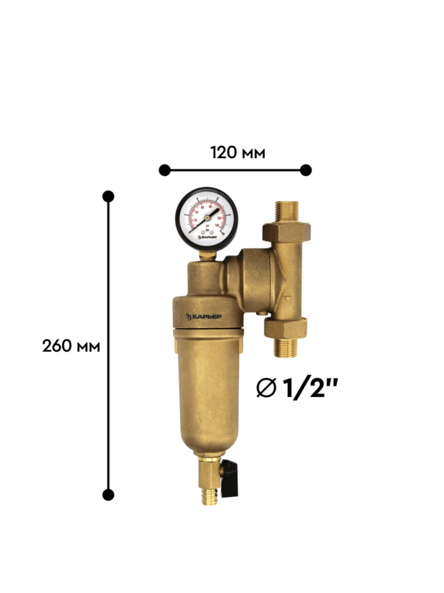 Магистральный фильтр с манометром Барьер Протект универсальный 3/4 ГВС