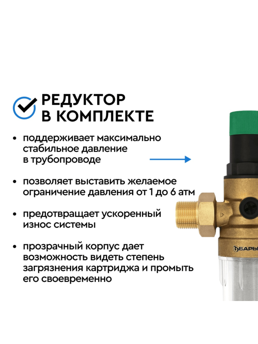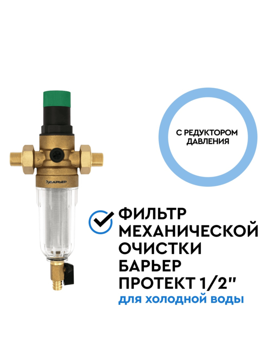 Магистральный фильтр Барьер Протект с редуктором давления 1/2 для холодной воды