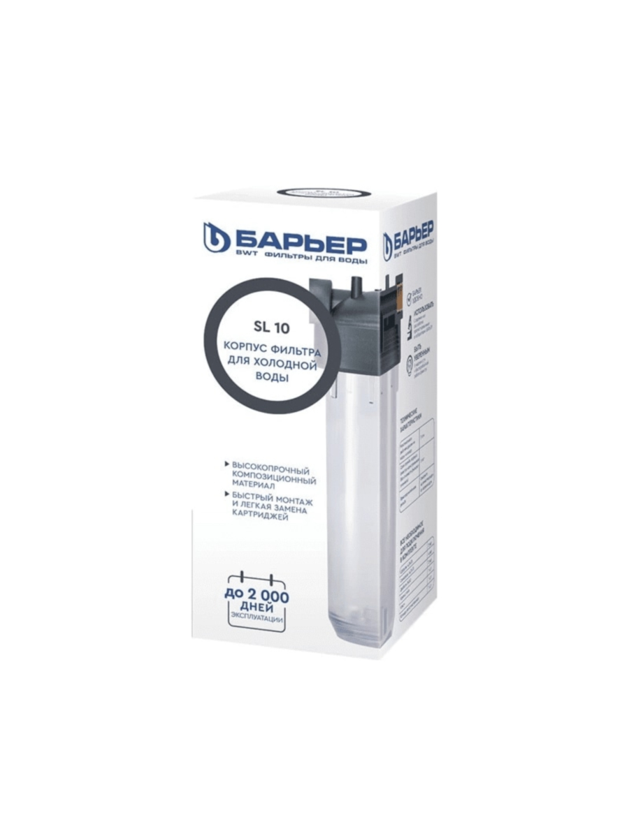 Корпус Барьер SL10 3/4 изготовлен из прочного прозрачного пластика и предназначен для установки сменных картриджей стандарта Slim Line 10.