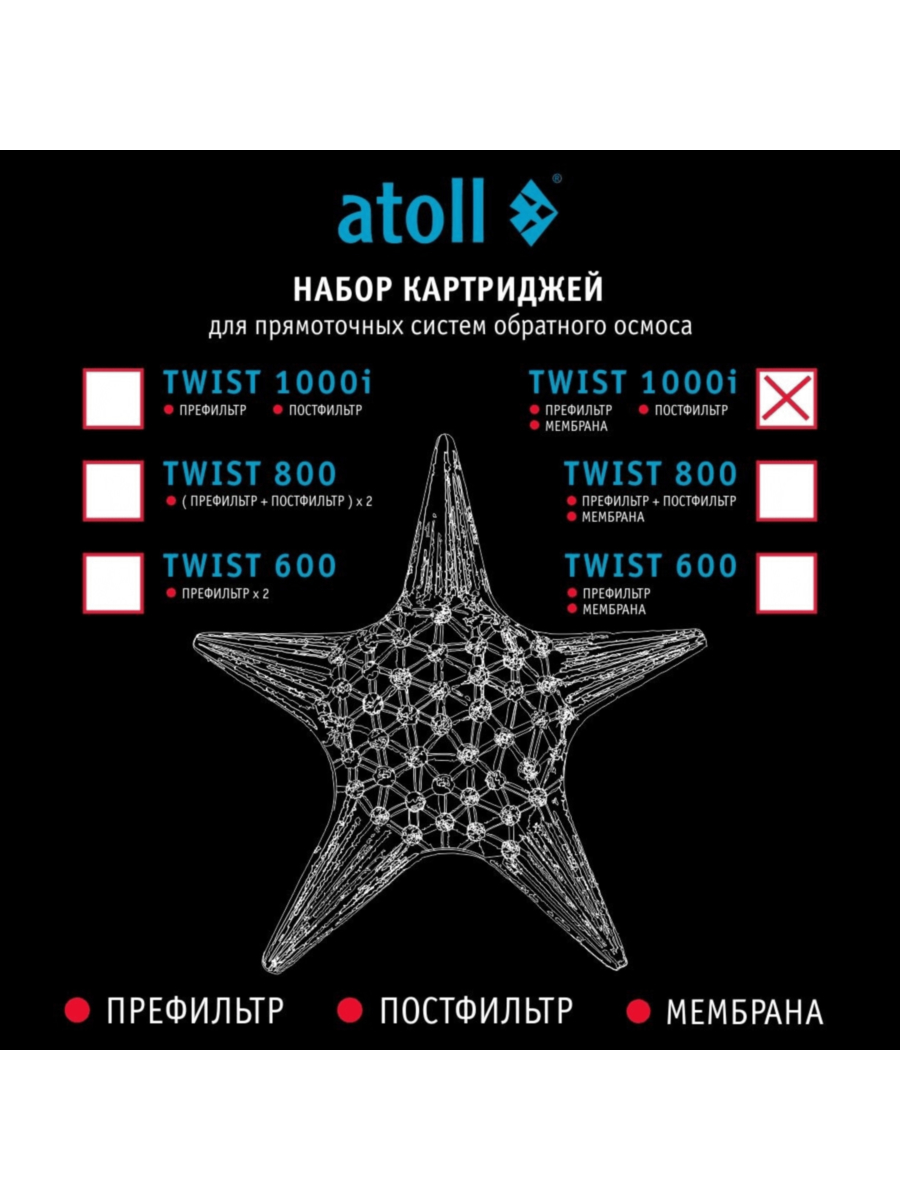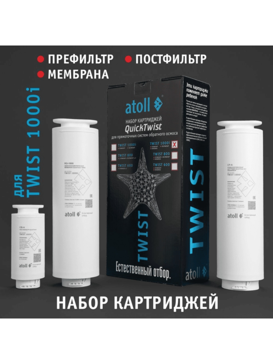 Набор картриджей для atoll TWIST 1000i (префильтр, мембрана, постфильтр)