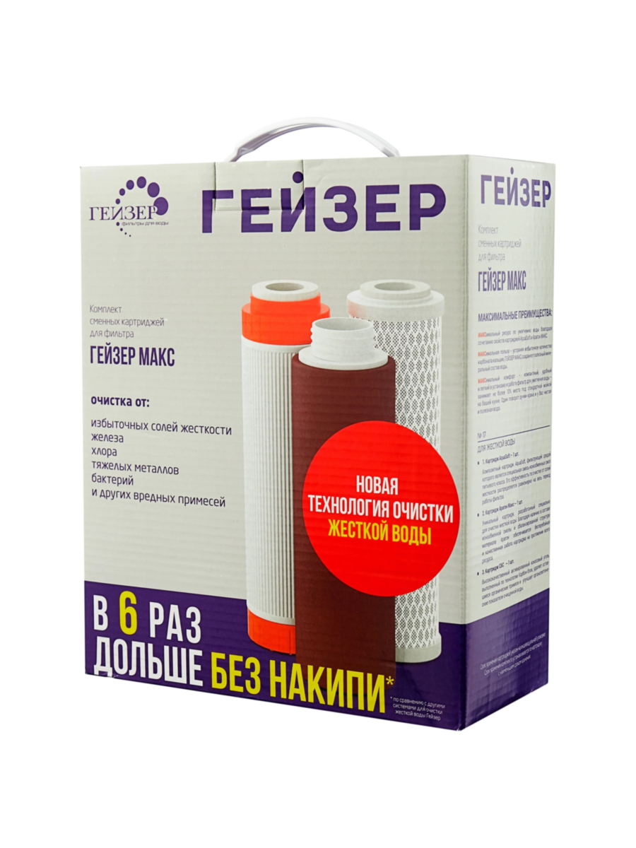 - Гейзер Арагон Макс — картридж, глубоко очищающий воду от тяжелых металлов, хлора и органических соединений;