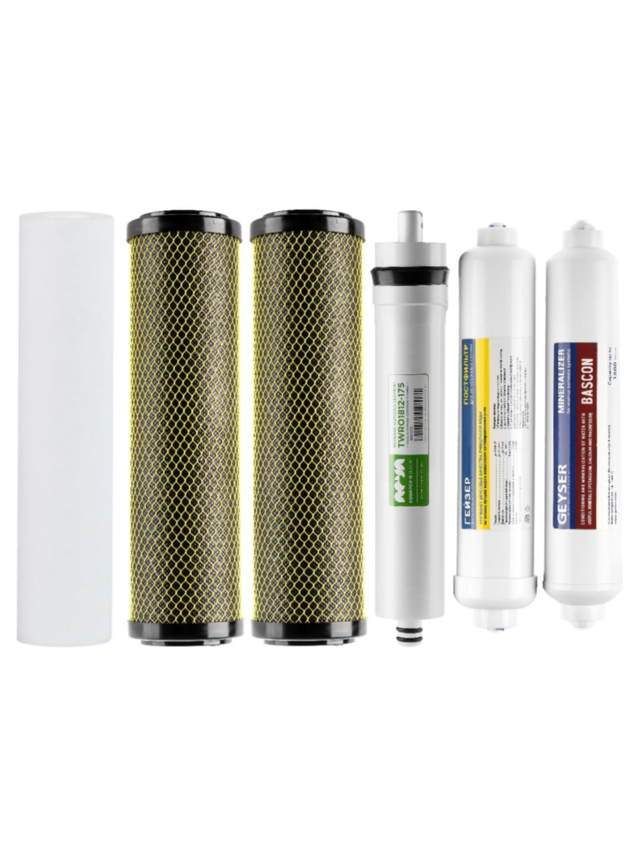 В комплект Гейзер RO3 входят шесть сменных картриджей, которые устанавливаются в систему в следующем порядке: