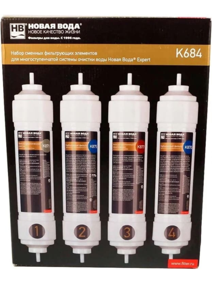 - K870 — угольный картридж с прессованным активированным углем (Carbon Block), ресурс до 6 000 литров.