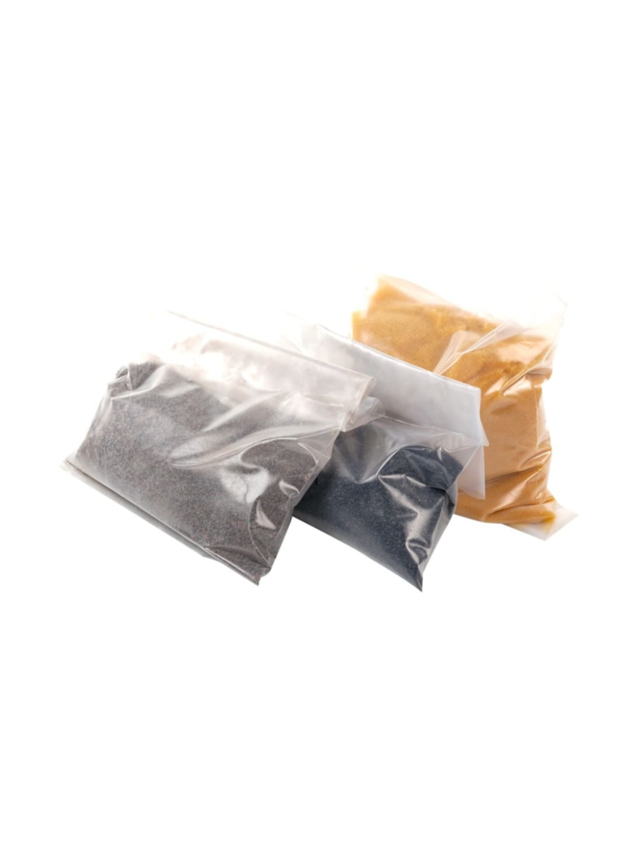 - Полный комплект включает три вида материалов, распределенных по отдельным упаковкам для постепенного ввода в работу фильтра;