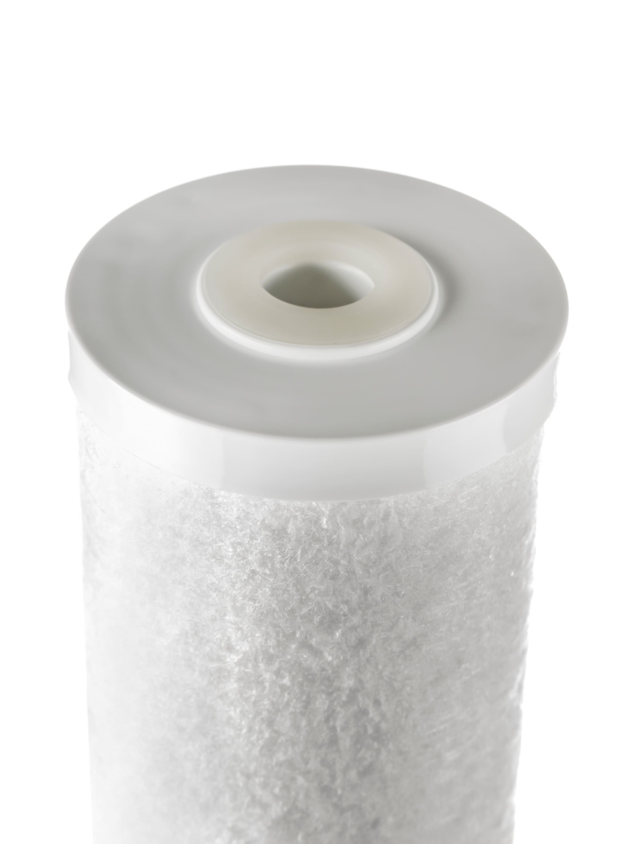 - Наружный слой из полипропилена выполняет роль предфильтра, удаляя крупные механические примеси размером более 25-50 мкм.