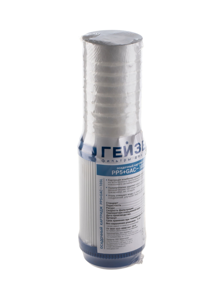 Картридж Гейзер PP-GAC предназначен для комплексной очистки холодной воды от различных загрязнений и улучшения её вкусовых качеств.