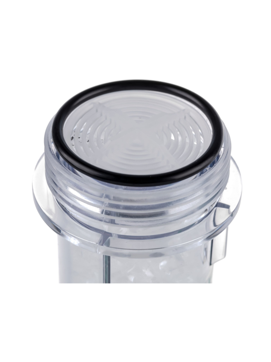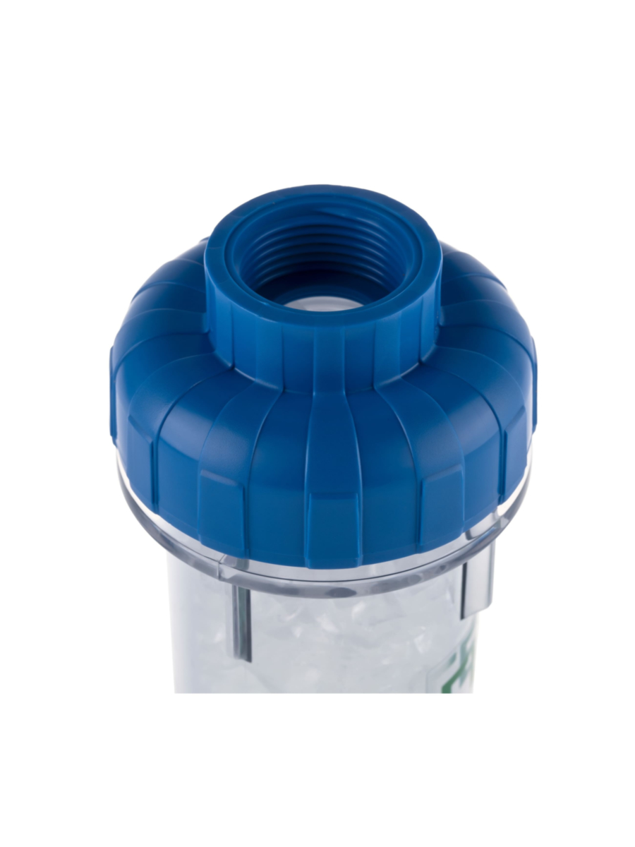 - Корпус фильтра изготовлен из пластика, внутри находится фильтрующая засыпка из кристаллического полифосфата, эффективно защищающая бытовые приборы от отложений и разрушения металла.
