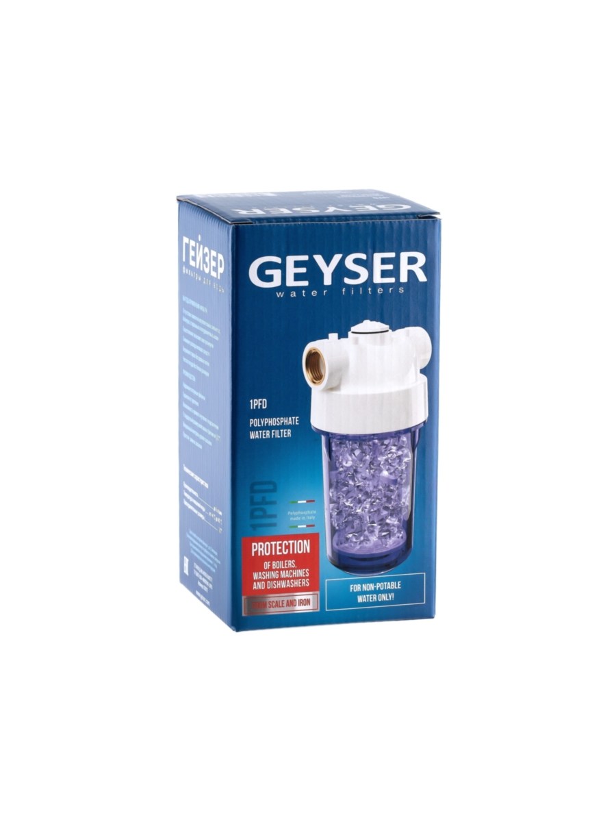 Фильтр Гейзер 1ПФД предназначен для защиты бытовых приборов от накипи и коррозии, возникающих вследствие использования жесткой воды. Использование фильтра недопустимо для фильтрации питьевой воды.
