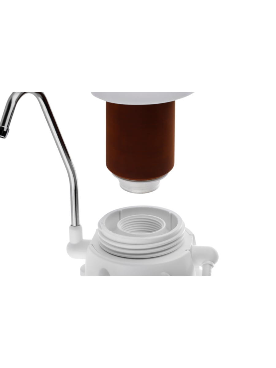 - Белоснежный стильный корпус дополняют элегантные линии лейки для отбора готовой питьевой воды.