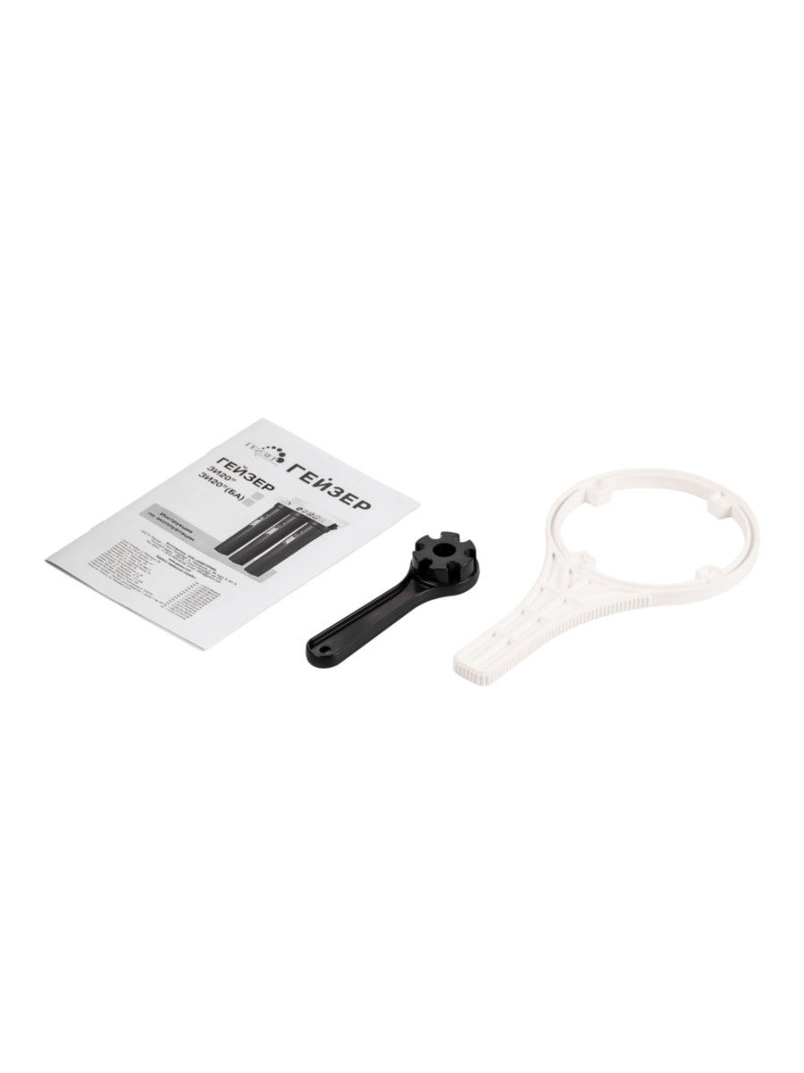 - В комплект поставки входят ключ для отвинчивания колб и подробная инструкция по эксплуатации, обеспечивающая правильное использование фильтра.