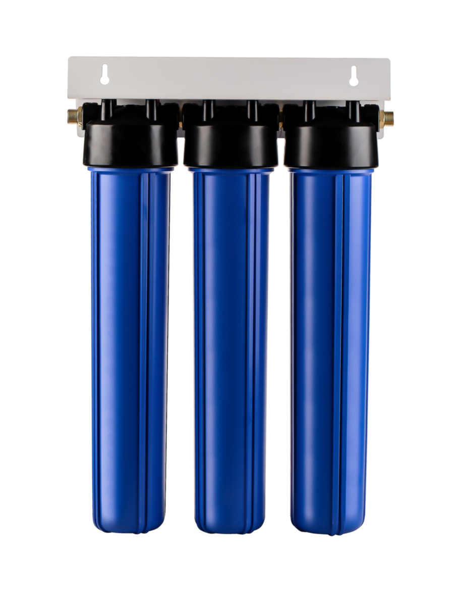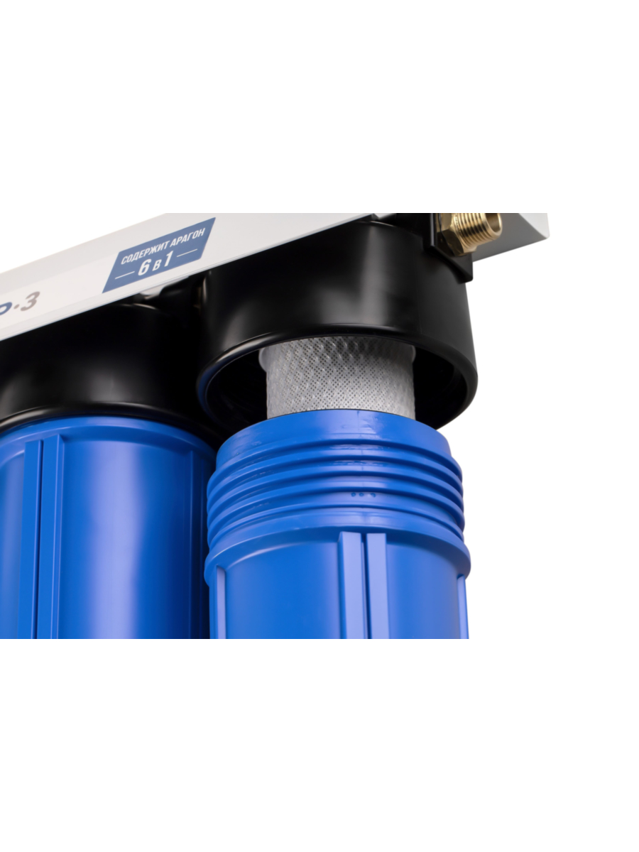 - Конструкция фильтра состоит из трех пластиковых колб стандарта Slim Line 20, обеспечивающих компактность и удобство установки.