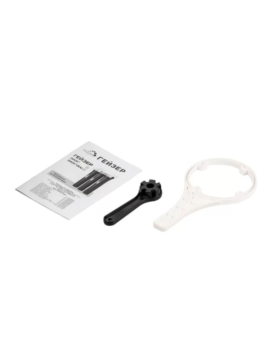 - Вторая ступень * — многофункциональный картридж Гейзер 30024, обеспечивающий комплексную очистку, умягчение и снижение образования накипи.