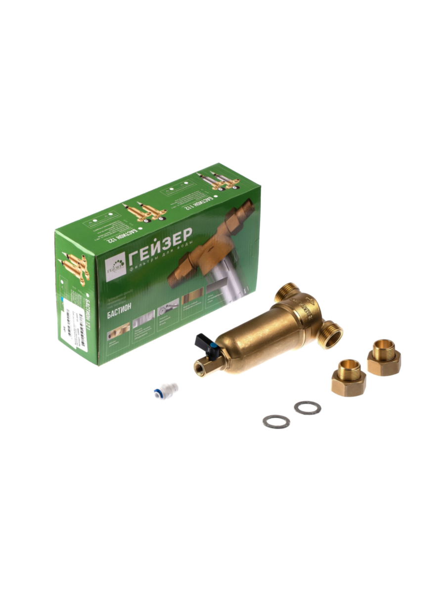 Фильтр Гейзер Бастион 121 3/4 — это надежное решение для очистки горячей и холодной воды от крупных механических загрязнений. Латунная колба позволяет выдерживать температуру до +80°С, что делает его идеальным выбором для установок с высокотемпературной водой.