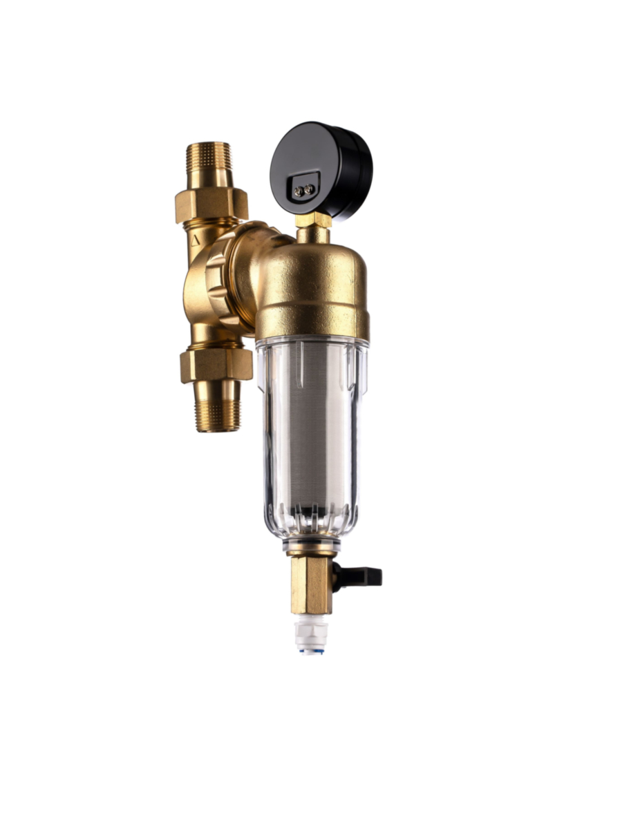- Латунная колба обеспечивает устойчивость к температурам до +80°C, что позволяет использовать фильтр для фильтрации горячей воды.
