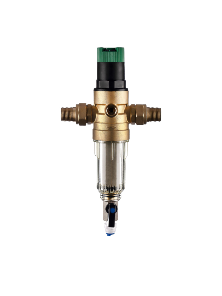 - Оснащен редуктором, позволяющим регулировать давление воды на выходе в диапазоне от 2 до 6 атмосфер, что обеспечивает защиту сантехники и бытовой техники от перегрузок.