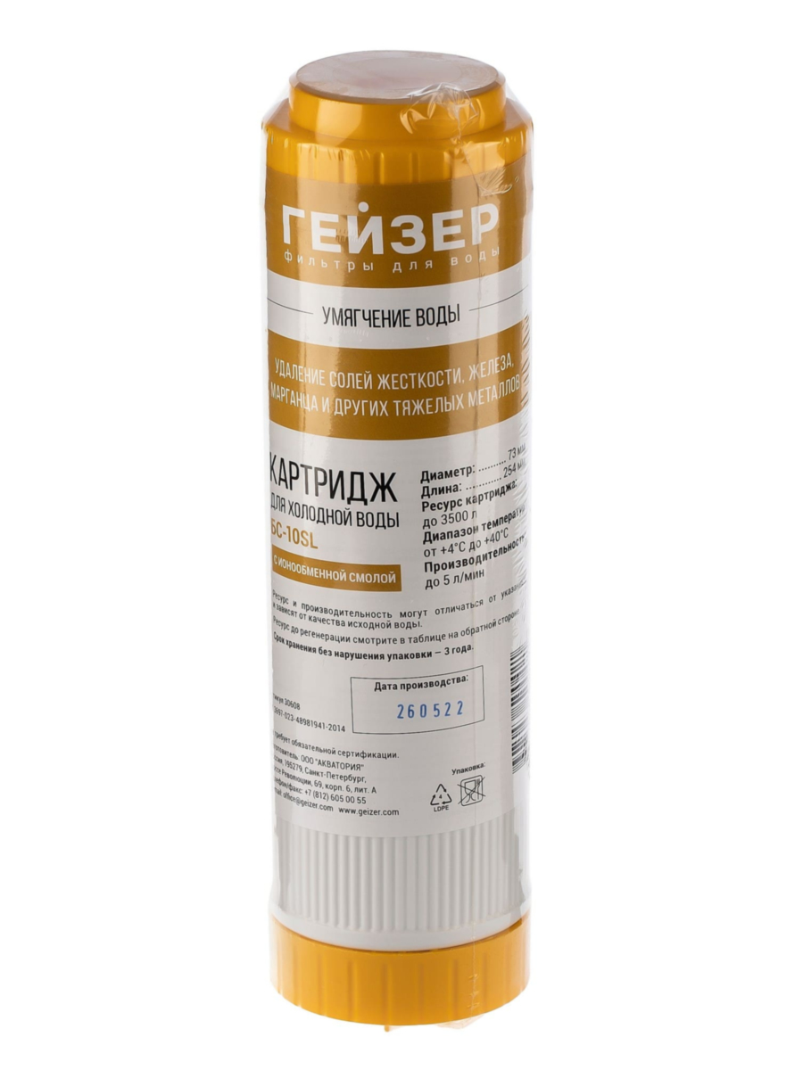 Гейзер БС-10SL — это умягчающий картридж, предназначенный для эффективного удаления солей жесткости из воды и предотвращения образования накипи на бытовых приборах и сантехнике. Конструкция предусматривает возможность регенерации, что значительно продлевает срок его службы.
