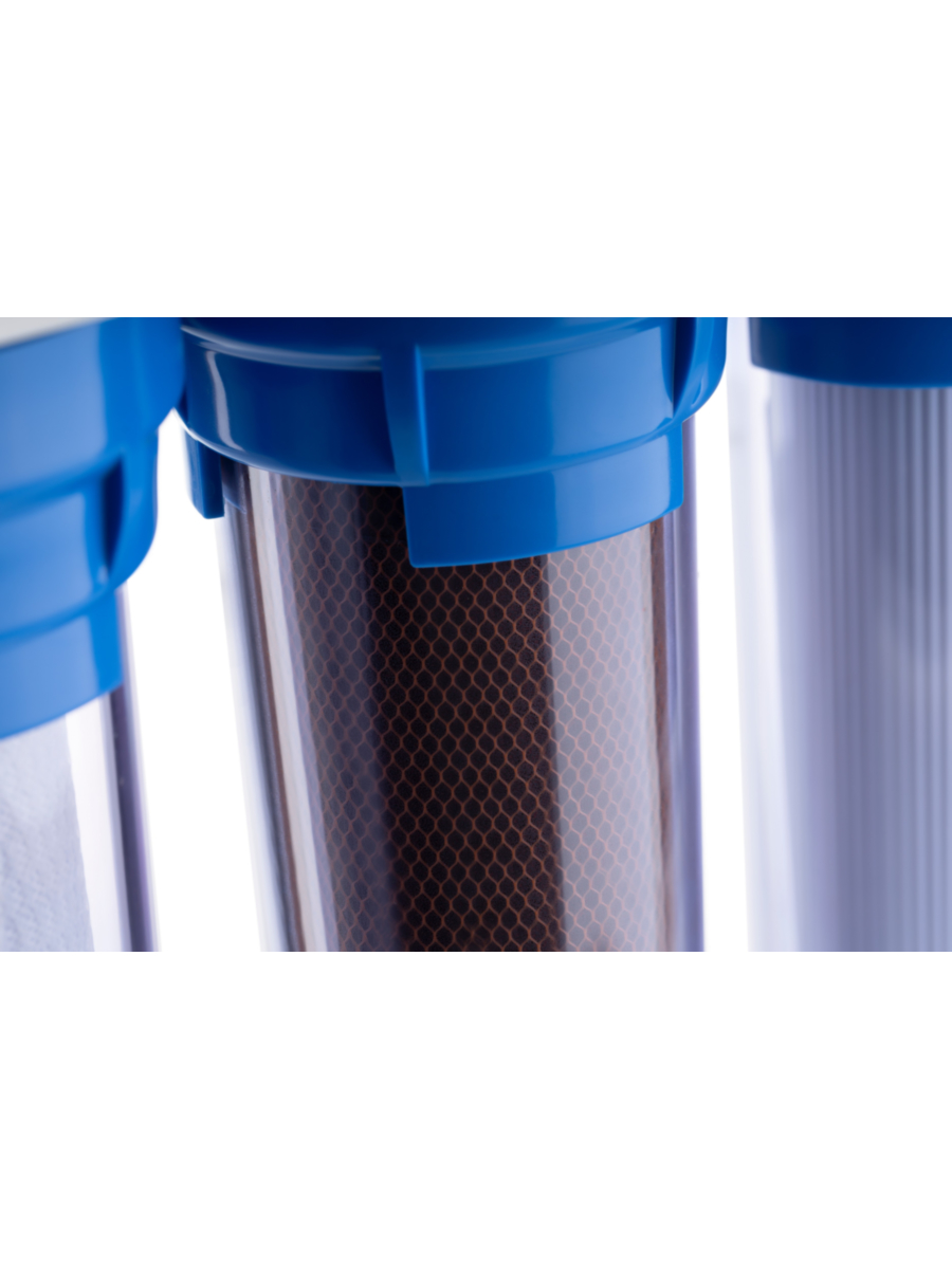 - Видимая степень загрязнения фильтрующих элементов позволяет вовремя заметить необходимость замены, обеспечивая постоянную чистоту воды.
