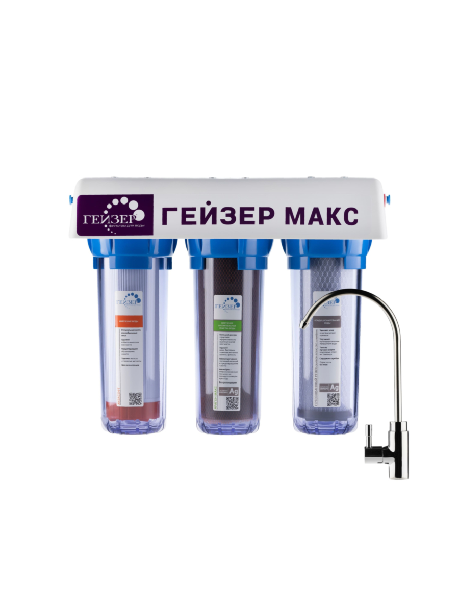 Гейзер Макс (прозрачный) — это стильное и эффективное решение для глубокой очистки питьевой воды в домашних условиях. Яркий прозрачный корпус позволяет визуально контролировать степень загрязнения фильтрующих элементов, обеспечивая своевременную замену и идеальный вкус чистой воды.