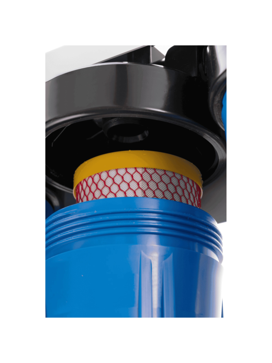- Каждая колба оснащена функцией сброса давления, облегчающей процесс замены картриджей и продлевающей срок службы фильтрующих элементов.