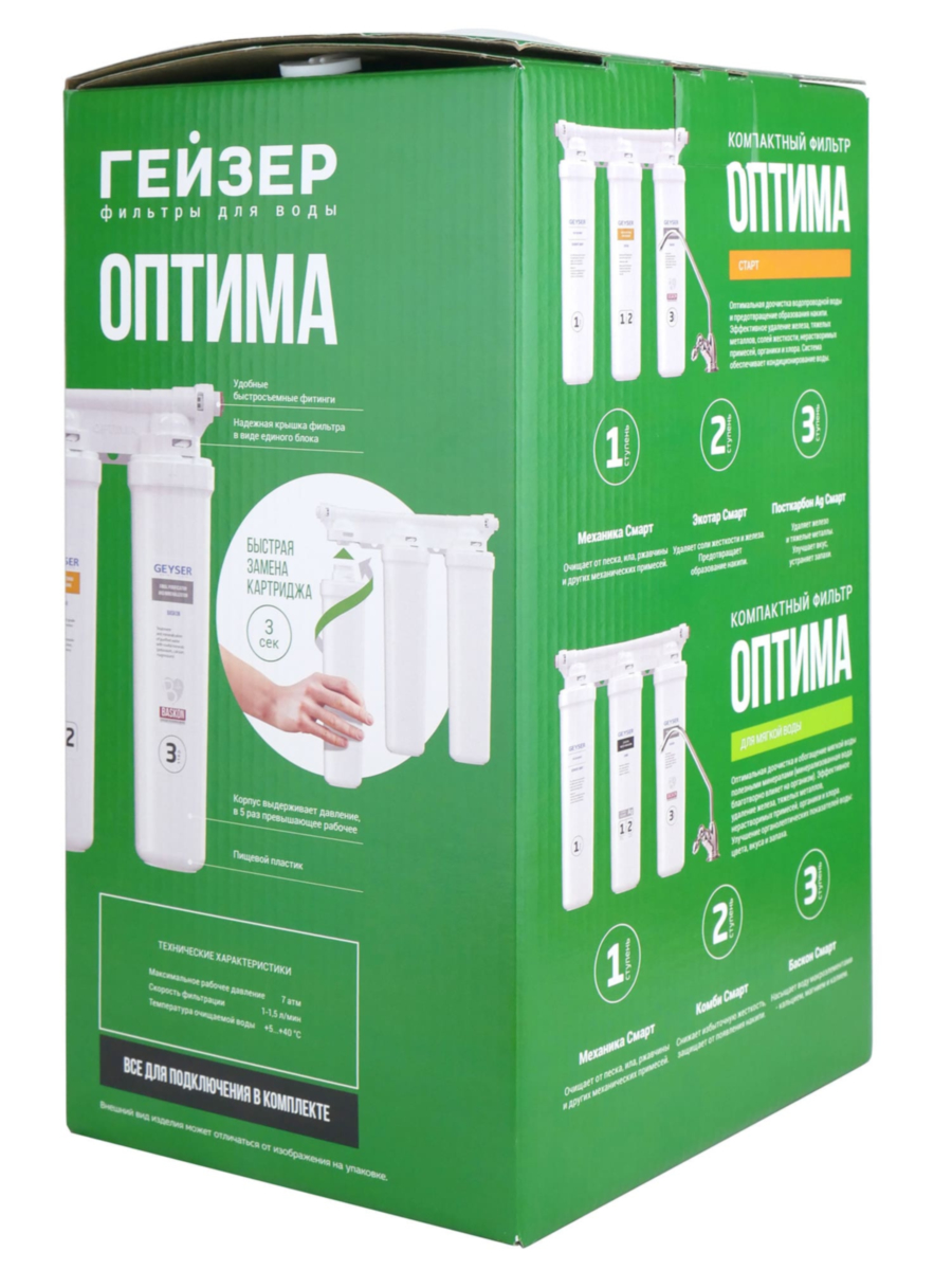В базовую комплектацию фильтра Гейзер Оптима Старт (без крана) входят: