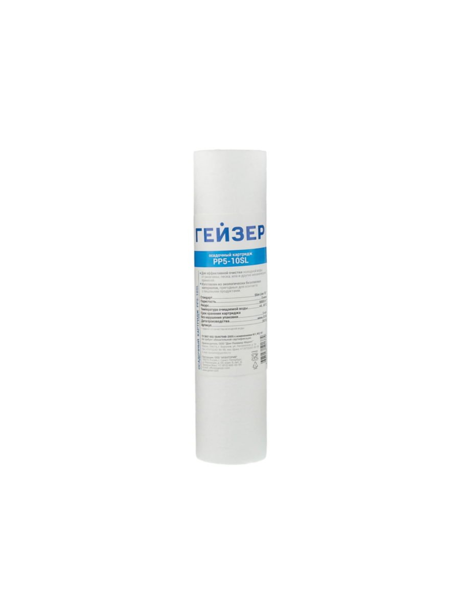 Картридж Гейзер PP 5-10SL предназначен для начальной механической очистки холодной воды от крупных частиц и загрязнений.