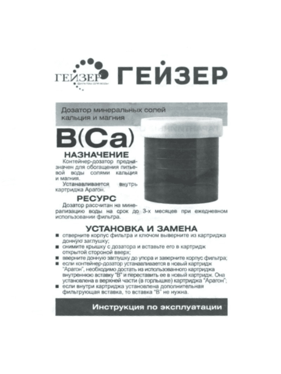 Минерализующая вставка Гейзер-В (Ca) для картриджей Арагон