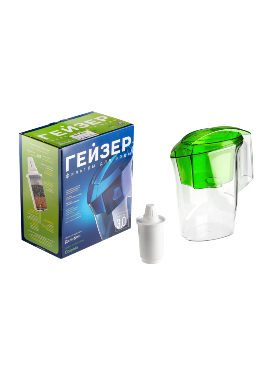 Фильтр-кувшин Гейзер Дельфин зелёного цвета — это стильный и практичный аксессуар для вашей кухни, который обеспечит вас и вашу семью чистой и безопасной водой. Зелёный корпус добавляет свежести и жизненной энергии интерьеру, подчеркивая ваш вкус и стремление к комфорту.