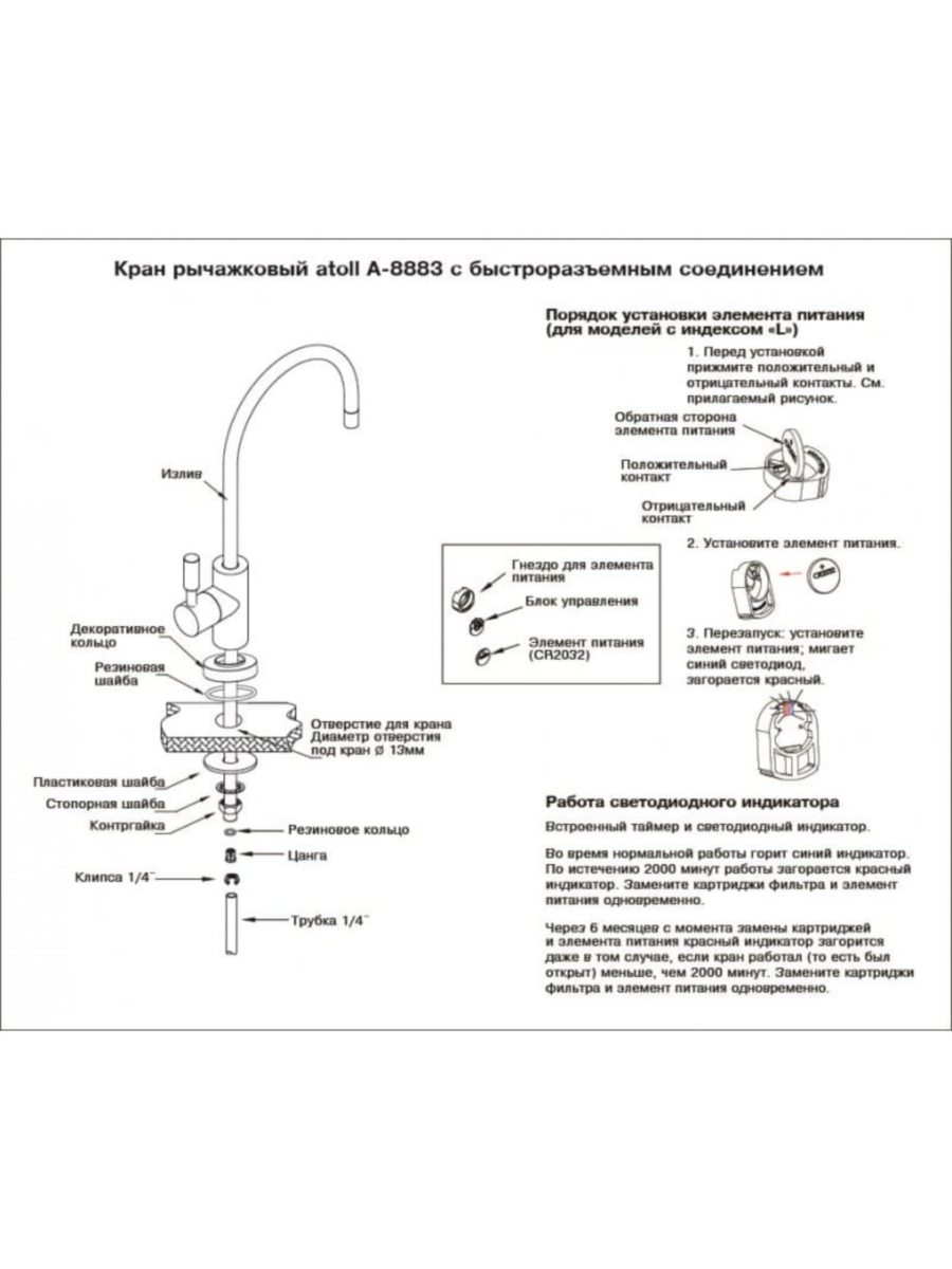 - не допускайте механических повреждений LED‑индикатора и корпуса крана.