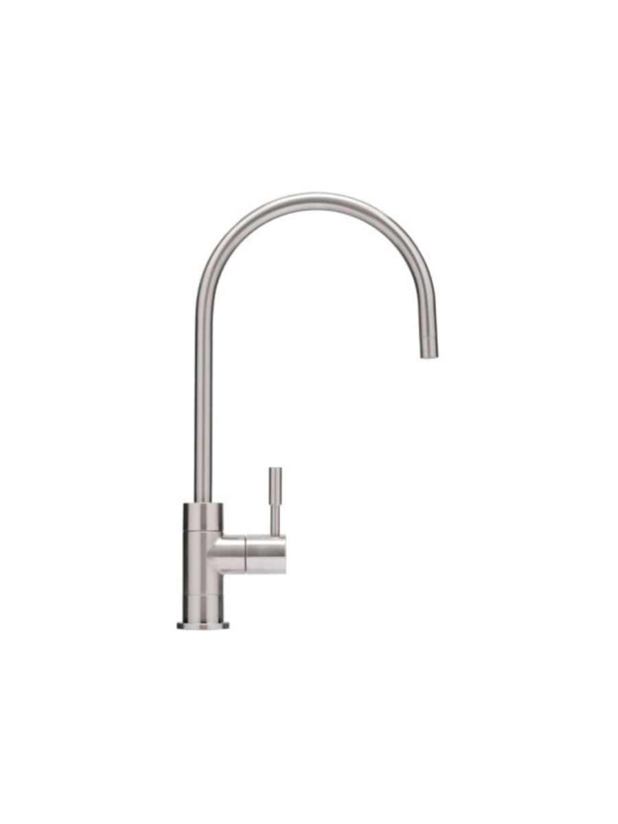 Элегантный рычажковый кран в отделке «полуматовый никель» — оптимальное решение для подачи очищенной воды в бытовых системах водоочистки. Модель сочетает современный дизайн с надёжной конструкцией, обеспечивая удобство эксплуатации и долгий срок службы.