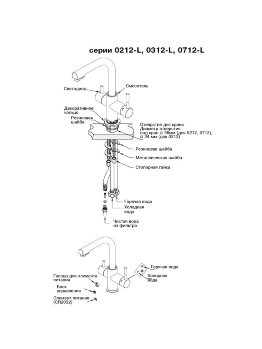 - не допускайте механических повреждений LED‑индикатора и корпуса смесителя.