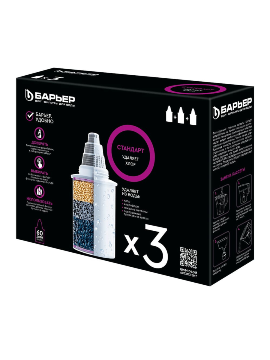 Выбирайте набор из трёх сменных картриджей Стандарт от Барьер и наслаждайтесь чистой и безопасной водой каждый день!