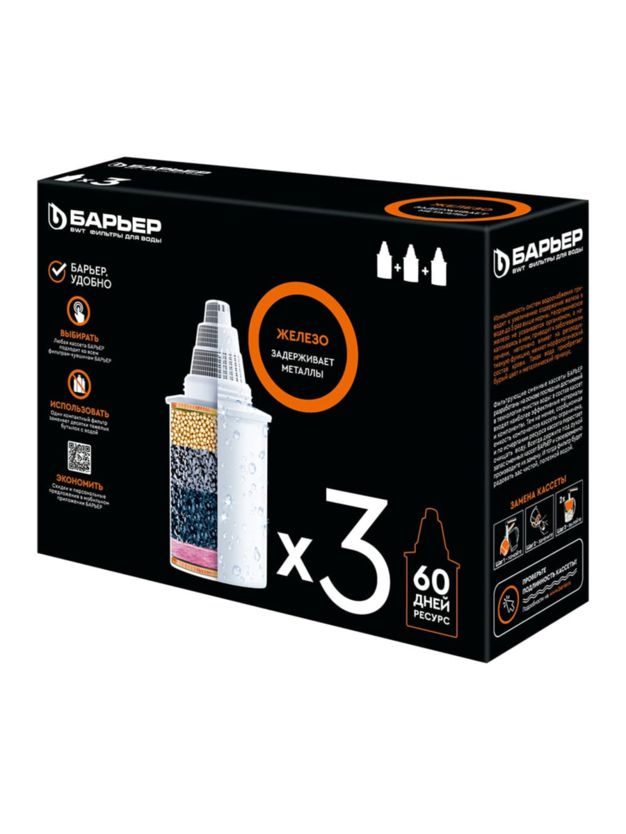 Выбирайте набор из трёх сменных картриджей Железо от Барьер и наслаждайтесь чистой, вкусной и полезной водой каждый день!