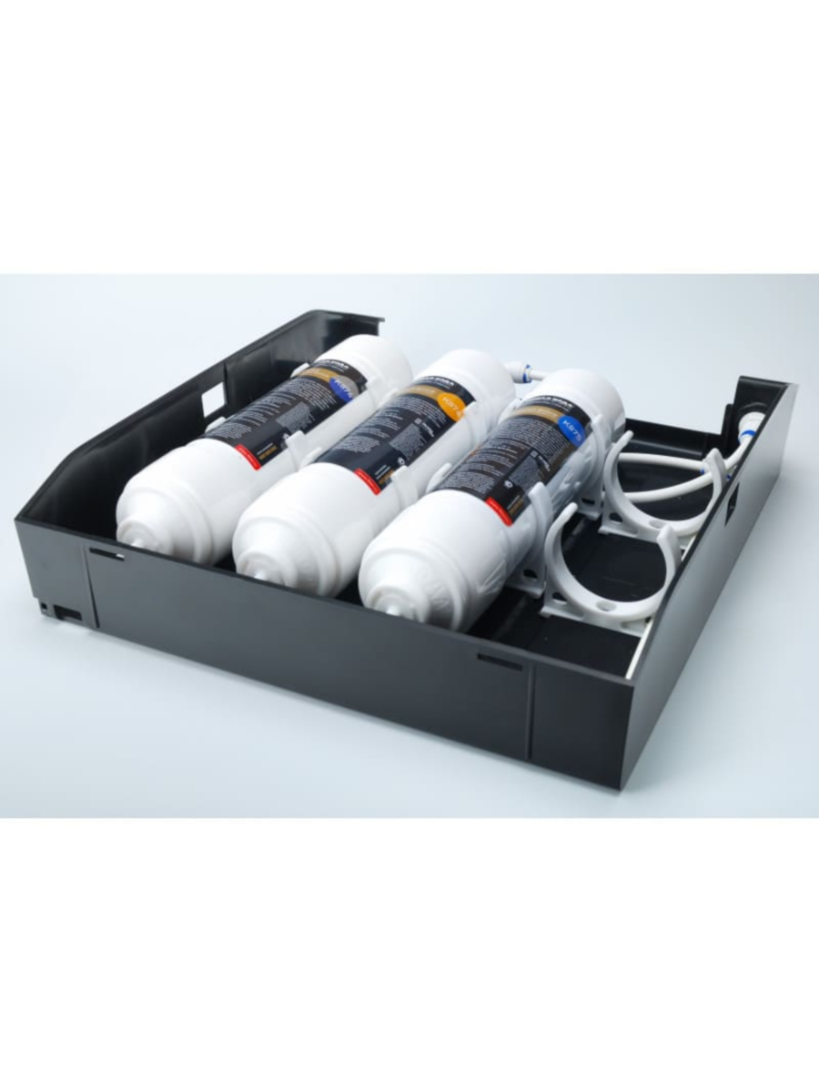 - Оснащён тремя специальными картриджами для поэтапной очистки воды, обеспечивая комплексное удаление загрязнений.