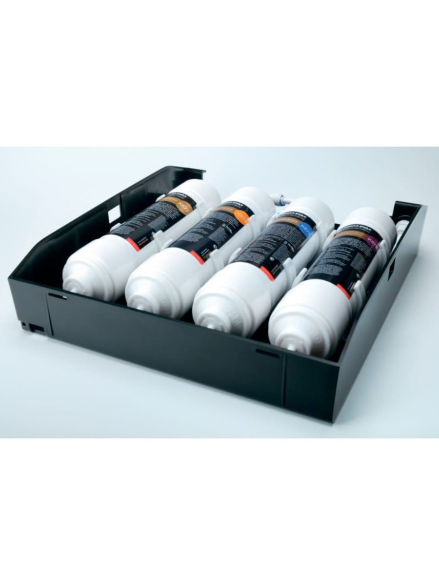 - Картридж K875 (активированный уголь) — обеспечивает дополнительную очистку воды от остаточных хлор-органических соединений, улучшая вкус и устраняя посторонние запахи (ресурс до 8 000 литров).