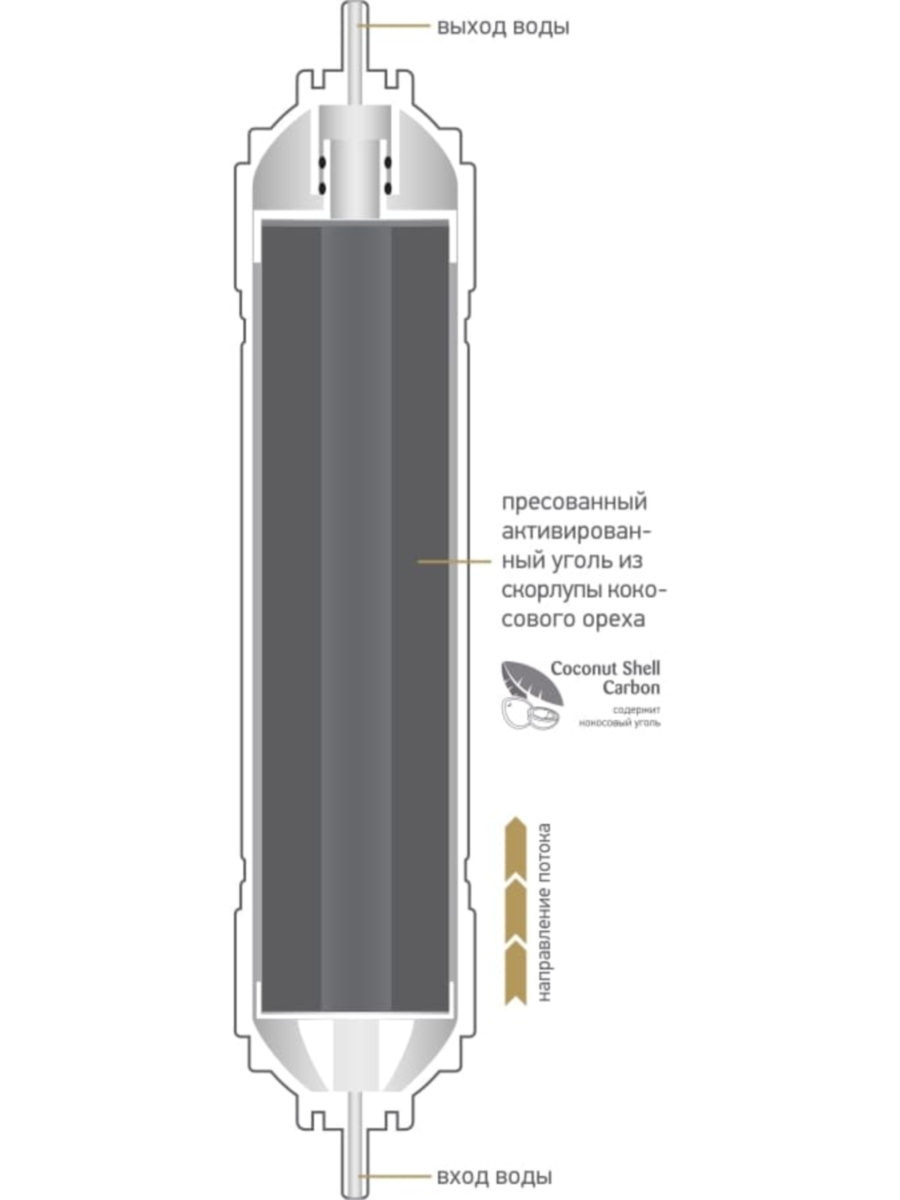 - Продуктивно удаляет из воды посторонние привкусы и запахи, обеспечивая её безопасность и приятные вкусовые качества.
