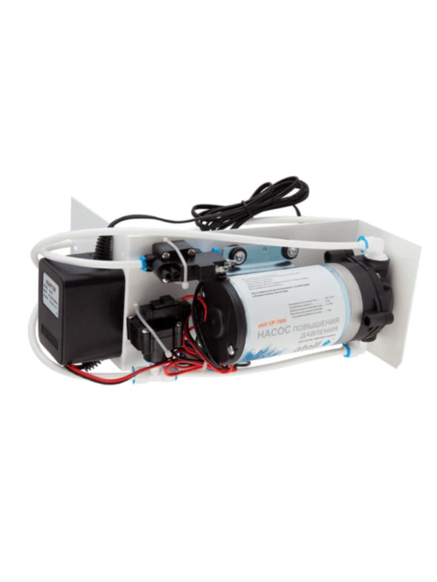 Насос повышения давления Atoll UP‑7000/24V — компактное и надёжное решение для обеспечения стабильной работы обратноосмотических фильтров при недостаточном давлении в водопроводной магистрали. Устройство гарантирует эффективную работу систем водоочистки, когда входное давление ниже минимально требуемого уровня (менее 2,8 бар). Подходит для фильтров с производительностью мембраны 50–100 gpd.