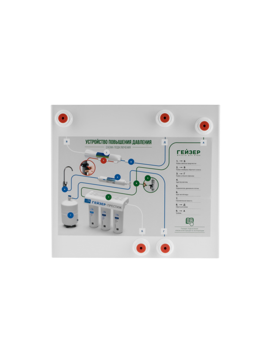 - Позволяет использовать системы обратного осмоса там, где изначально отсутствует нужное давление в трубопроводе;