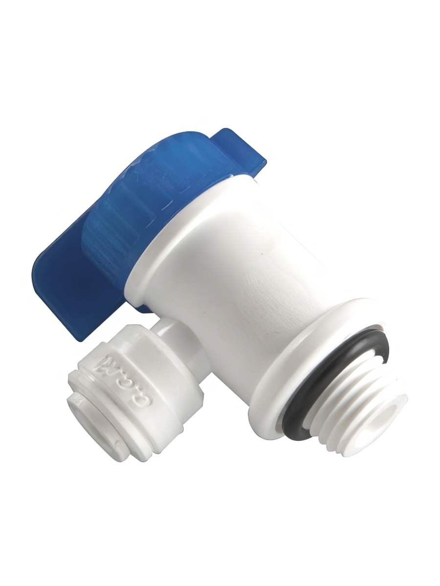 - Пластиковый кран с наружной резьбой 1/4 и уплотнителем предназначен для использования в бытовых фильтрах с обратным осмосом.