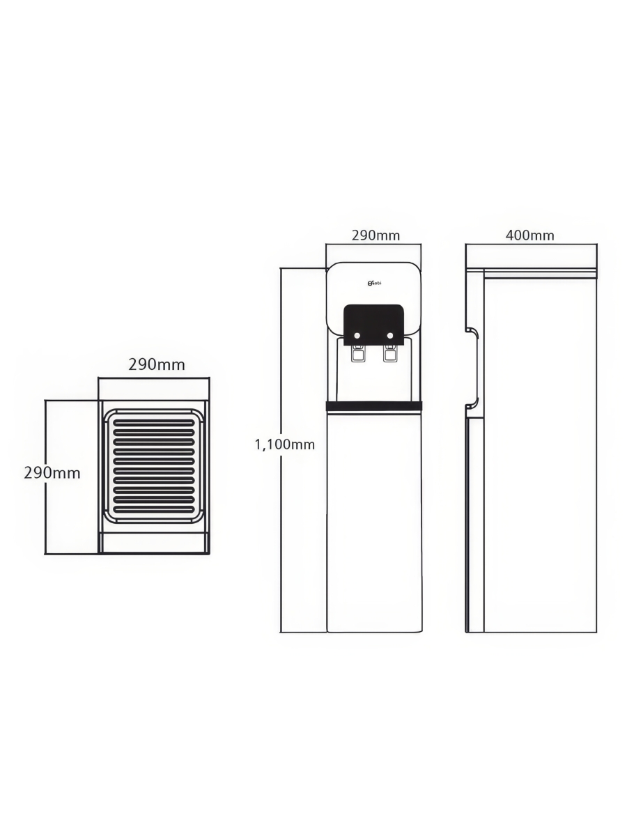 - Напольное исполнение обеспечивает удобную интеграцию устройства в пространства офисов, предприятий и жилых помещений.