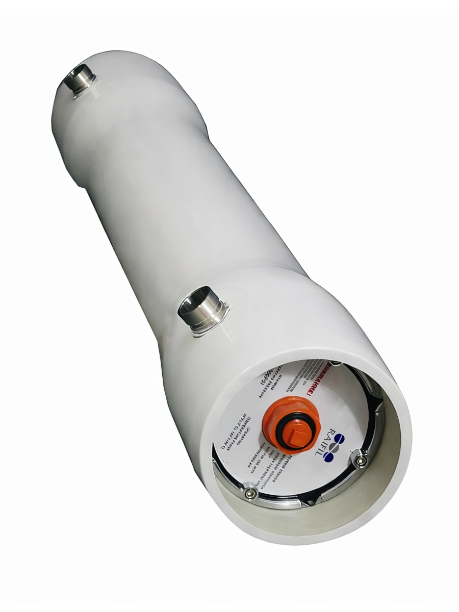 Мембранный напорный корпус Raifil FRP 8040-4W с боковым портом предназначен для установки четырех мембран типоразмера 8040. Этот корпус обеспечивает надежную работу при давлении 300 PSI, подходя для применения в промышленных системах очистки воды.