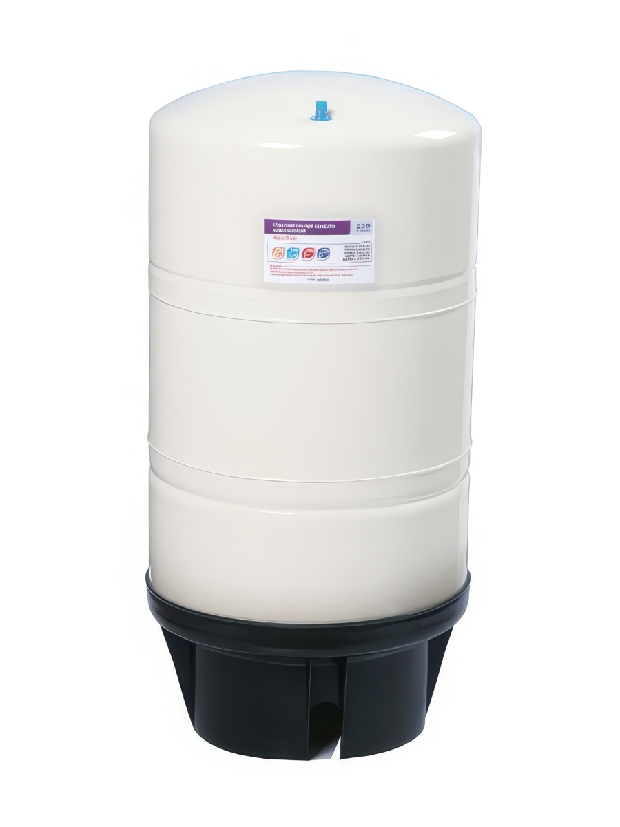 - Используется в бытовых системах обратного осмоса для накопления очищенной воды, компенсируя низкую производительность обратноосмотической мембраны.