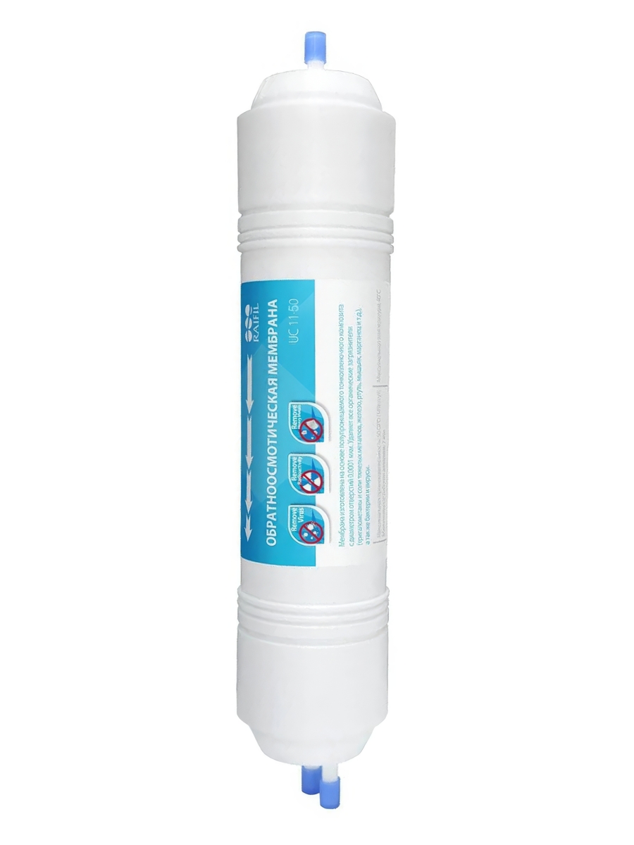 - UC 11-50 — это неразборный сменный мембранный модуль, содержащий высококачественную обратноосмотическую мембрану корейского производства с производительностью 50 галлонов в сутки (около 189 литров).